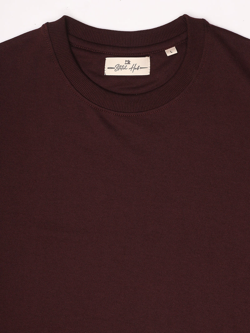 Stitch Hub Wine Loop Knit Sweatshirt For Men - Regular Fit With Solid Pattern